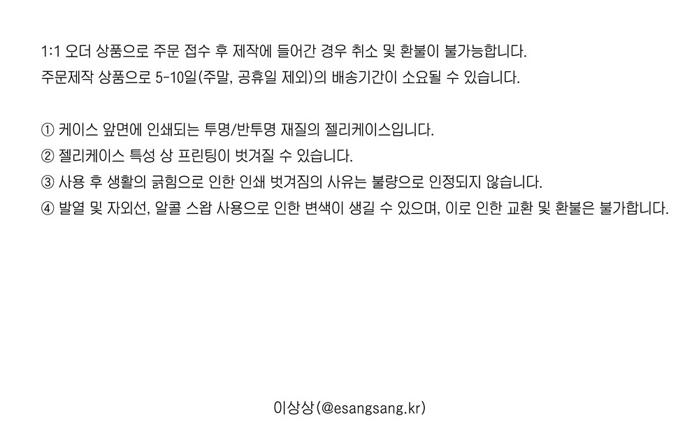 * 1:1 주문제작 상품으로 출고까지 5-10일 정도 소요될 수 있습니다.